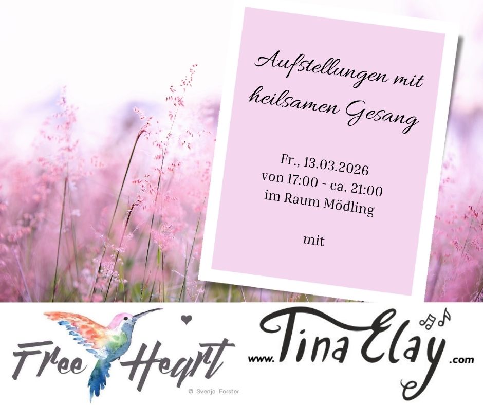 Aufstellungen mit heilsamen Gesang – März 2026 mit Svenja Forster (Aufstellungsleitung) und Tina Elay (Musik, Klänge) Die Aufstellungen mit heilsamen Gesang sind Aufstellungsarbeit, in einer ganz besonderen Form. Eine Verbindung zwischen Musik, Heilarbeit und Aufstellungsarbeit. Mit der heilsamen Unterstützung von Mantren, Healingsongs und Instrumentalklängen wird während der Aufstellung nicht wie klassisch gesprochen sondern vorwiegend gesungen. […]